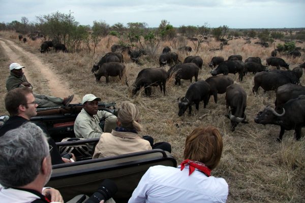 These are usually different to overland truck safaris in that they are usually small groups (around 9 people, max.), are not participation-based and offer lodge accommodation rather than camping. For example, a guided, open-vehicle safari such as ours to the Kruger National Park is more expensive than a self-drive safari, yet it’s still much less than most luxury safari lodges at approximately US$200 per person per day, including return road transfers from Johannesburg, accommodation in the Kruger National Park’s bungalows with air conditioning and en-suite bathrooms, all meals and game drives included.