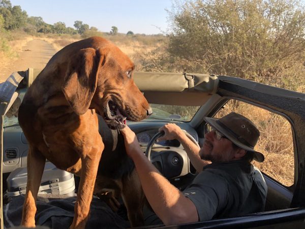 The well-trained dog responded immediately when Simon called him by name, and happily climbed into the front seat of the safari vehicle to be taken back to his handler.